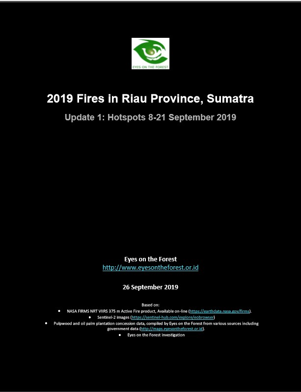 Fires have been raging globally and once again have become a “hot” topic in the media this year. EoF has compiled a summary of what has happened where in Sumatra during the two worst weeks so far: between 8 and 21 September. 21% of all Sumatra’s hotspots were detected in Riau, 29% of that inside HTI - industrial timber plantation concessions who supply pulpwood to Asia Pulp & Paper (APP) or APRIL to produce pulp. EoF conducted in-depth investigations into peatland converssions of two APP and two APRIL associated companies which suffered serious fires in the period. See our investigative report on Google Slides or download the PDF.