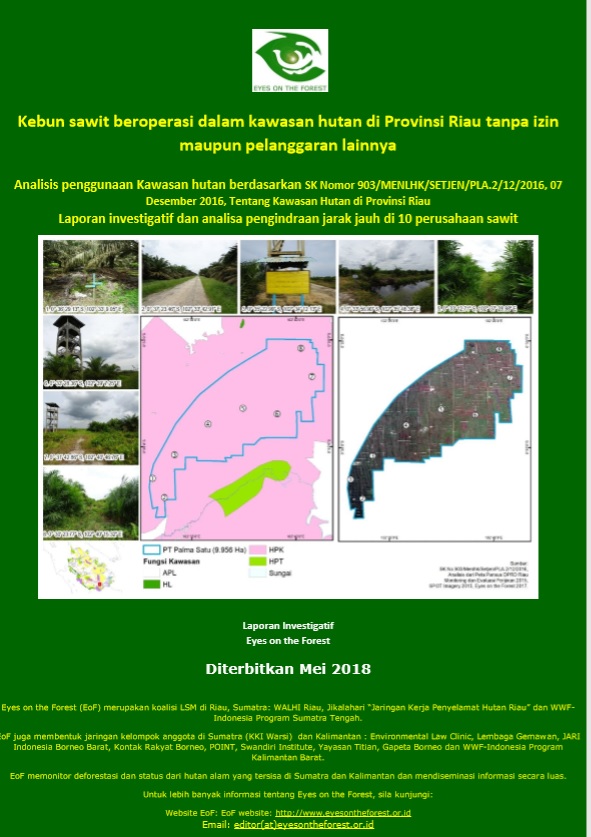 Koalisi Eyes on the Forest melakukan pemantauan langsung di lapangan guna membuktikan apakah kawasan hutan di Riau telah dikuasai oleh perusahaan kebun kelapa sawit. Dari hasil investigasi yang dilakukan oleh Eyes on the Forest November 2017, ditemukan 10 perusahaan diindikasikan berada pada kawasan hutan. Enam dari sepuluh perusahaan ternyata merupakan perusahaan yang bergabung dengan grup Darmex (PT. Duta Palma).