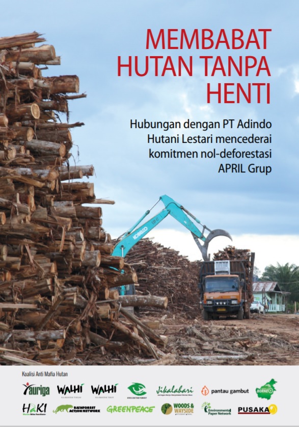 Berdasarkan analisis yang menggunakan citra satelit, laporan ini mendokumentasikan deforestasi yang luas, termasuk pembukaan hutan di lahan gambut di areal konsesi PT Adindo Hutani Lestari (Adindo), yaitu salah satu dari lima pemasok kayu pulp terbesar pada APRIL, selama periode 3 Juni 2015 – 31 Agustus 2020. Temuan ini merupakan pelanggaran signifikan terhadap komitmen APRIL dan Grup RGE untuk menghentikan pengembangan baru di lahan gambut berhutan – dan lebih luas lagi, menantang integritas janji APRIL dan RGE akan “nol deforestasi”.
