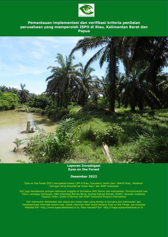 Dalam kurun waktu April 2021 hingga Juni 2022, tim Eyes on the Forest melakukan kegiatan verifikasi lapangan terhadap penerapan ISPO di 36 perusahaan budidaya perkebunan dan perusahaan yang melakukan usaha pengolahan hasil perkebunan di Provinsi Riau, Kalimantan Barat dan Papua. Untuk mendapatkan data dan informasi dalam kegiatan ini, tim EoF melakukan dengan cara observasi langsung, wawancara, pengambilan titik koordinat secara langsung dan memperkirakan secara visual. Setidaknya 36 lokasi perkebunan sawit, 27 di antaranya di Riau, 5 di Kalbar dan 4 di Papua dilakukan pemantauan kinerja ISPO dengan menggunakan beberapa standard dan indikator sertifikasi sawit lestari ini.